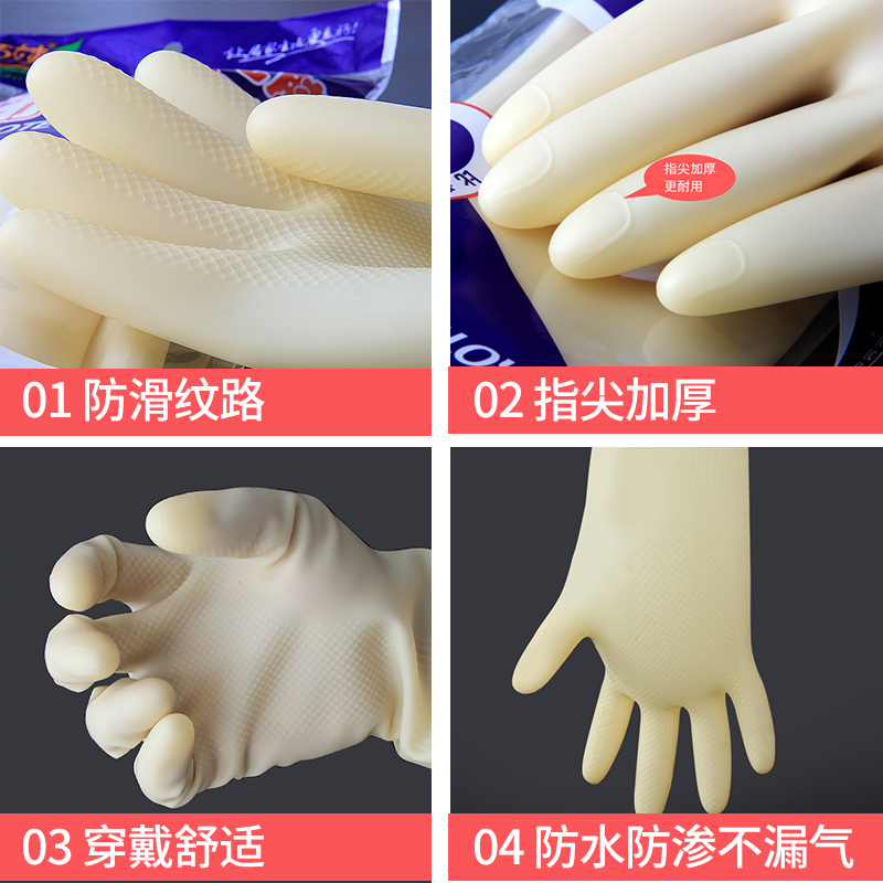 Leather gloves rubber thickening wear-resistant lengthening work waterproof dishwashing female durable rubber latex rubber tendons labor insurance
