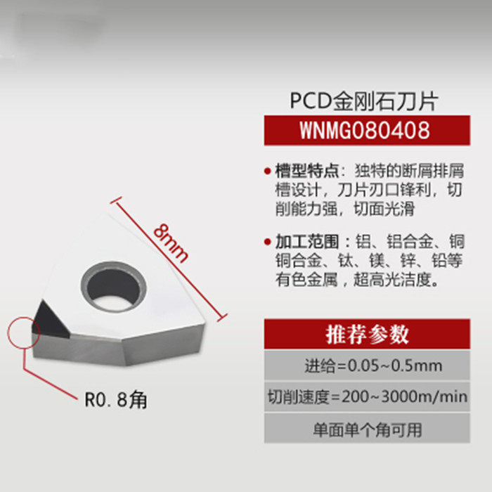 WNMG replaces imported diamond outer circle inner hole boring knife peach shaped CNC blade PCDCBN aluminum with non-standard WBGT