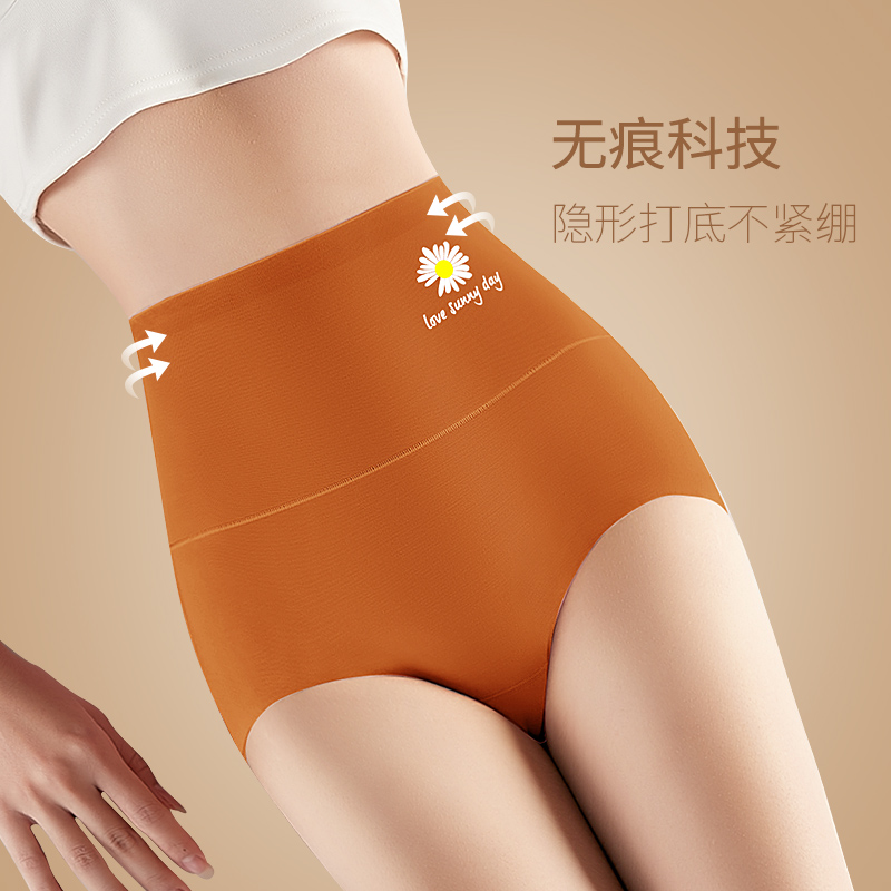 Graphene antibacterial unscarred underpants female pure cotton crotch high waist collecting ice silk with waist triangular shorts thin and breathable-Taobao