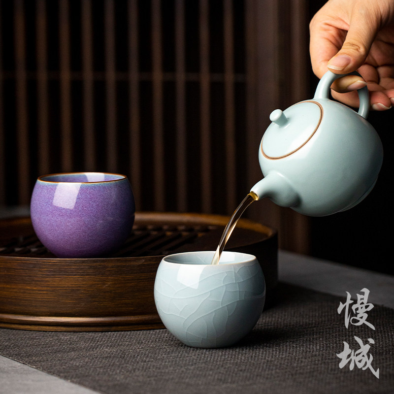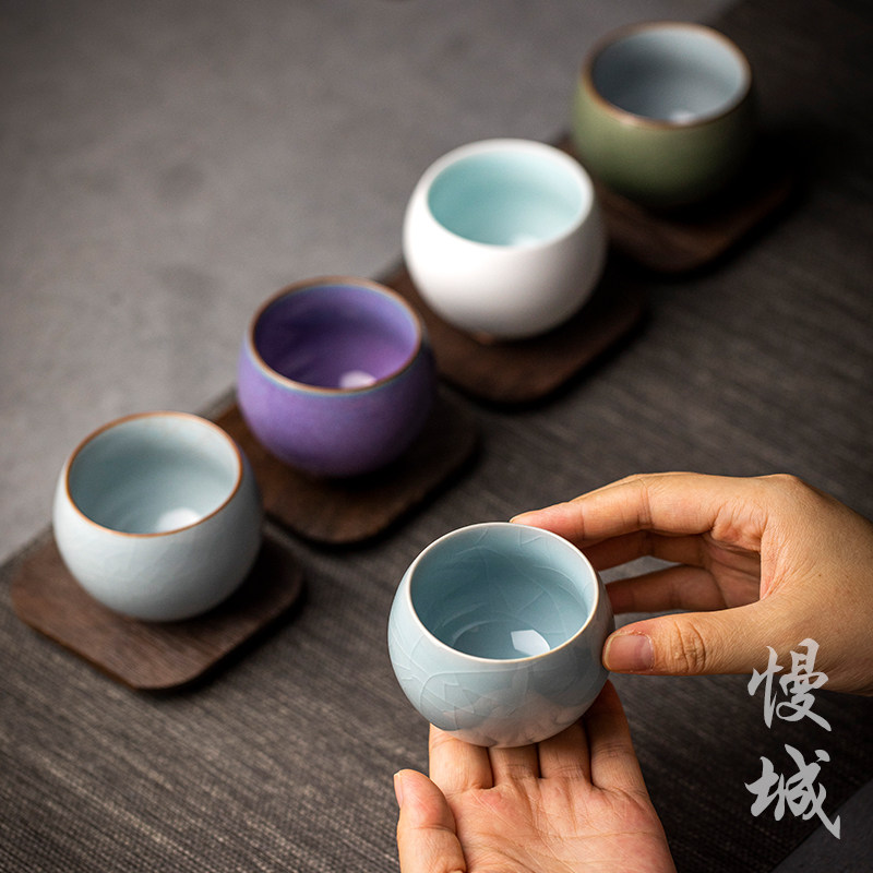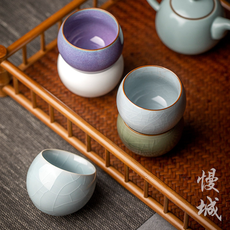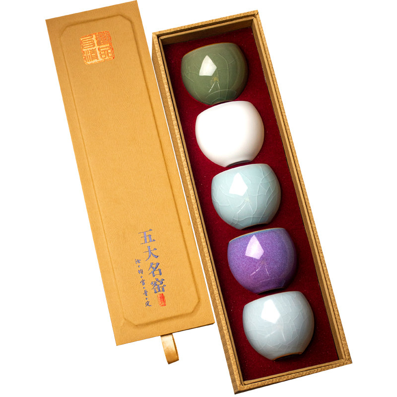 Five famous kiln ceramic tea cup set Ru kiln household Kung Fu tea set single cup personal cup tea cup gift box