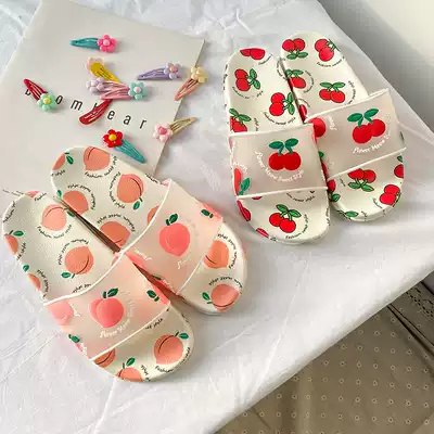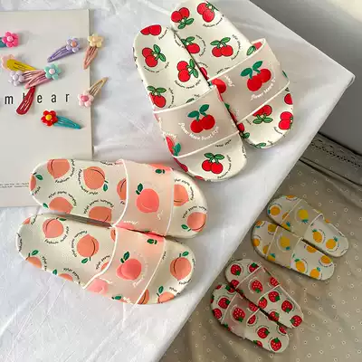 Cute cartoon fruit flat flip flops beach slippers female outdoor sandals available at home