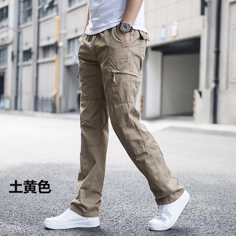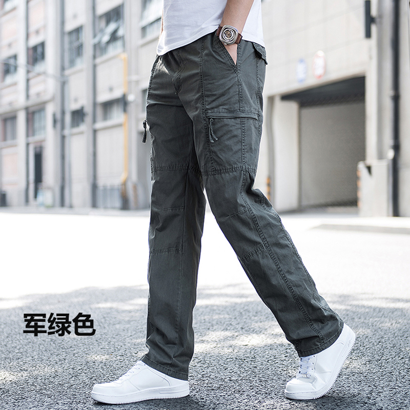Special Cabinet Summer Work Pants Men Pants Multi-Pocket Straight Cylinder Casual Pants Boomer Loose Men Pants Large Size Pants Slim Fit Pants Thin