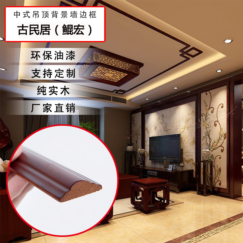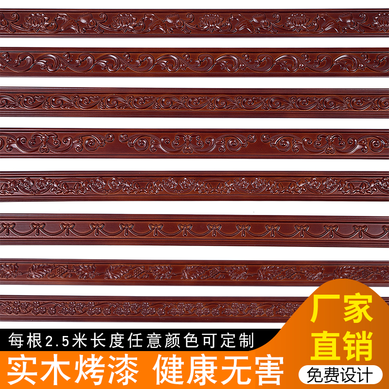 Chinese solid wood lines Carved waist line crimping edge line Border line European suspended ceiling TV background wall decorative strip flat