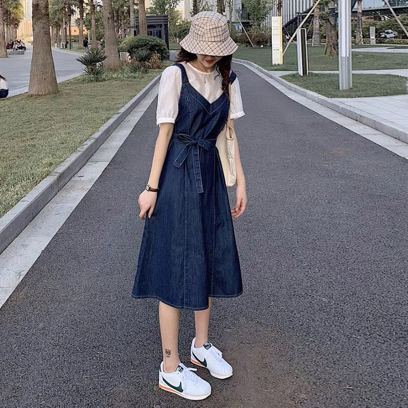 Town Strap Dress (Ya Ya Feng Harbor Retro Chic Spring and Autumn Small Volume Small Volume Age Reduction Large Couple with Autumn Winter) (Fame Fashion Girl Leisure Lady