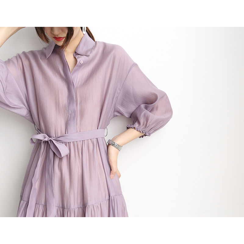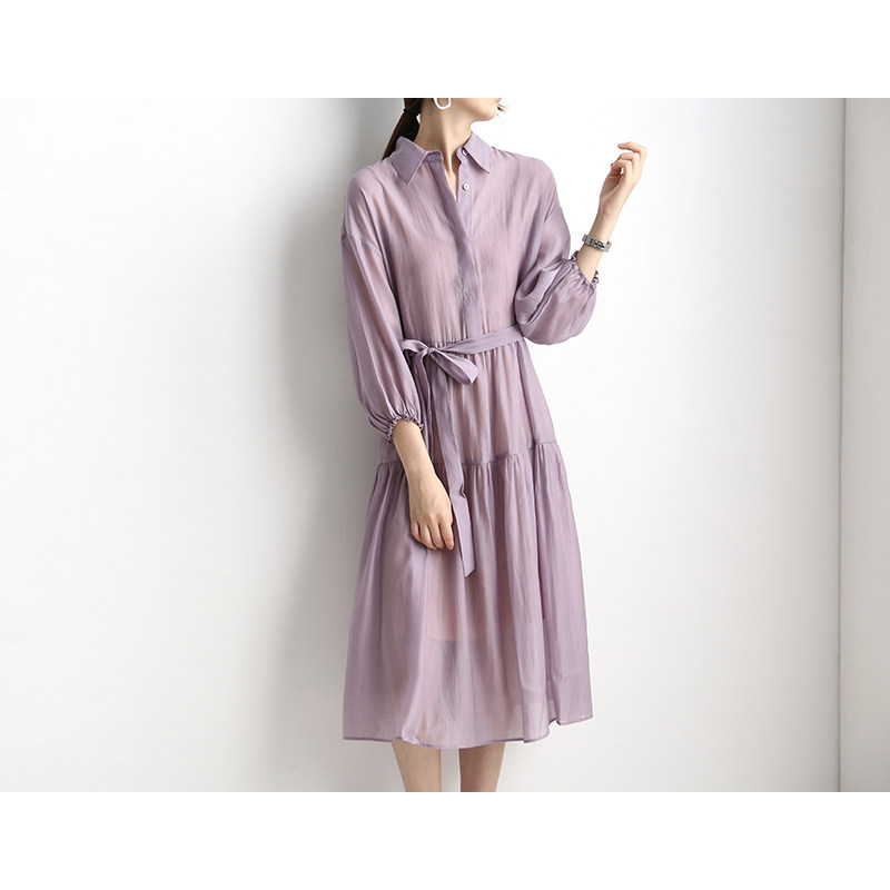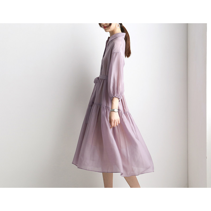 Spring 2022 new gentle wind loose waist and thin temperament purple dress women's mid-length sun protection skirt