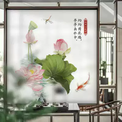 Chinese style window glass sticker no glue self-adhesive film Living room powder room frosted shading opaque electrostatic paste