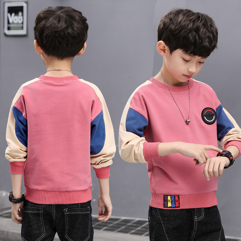 Boys' long-sleeved T-shirts for children's middle and older children plus velvet foreign atmosphere autumn tops for boys spring and autumn undershirts pure cotton underwear