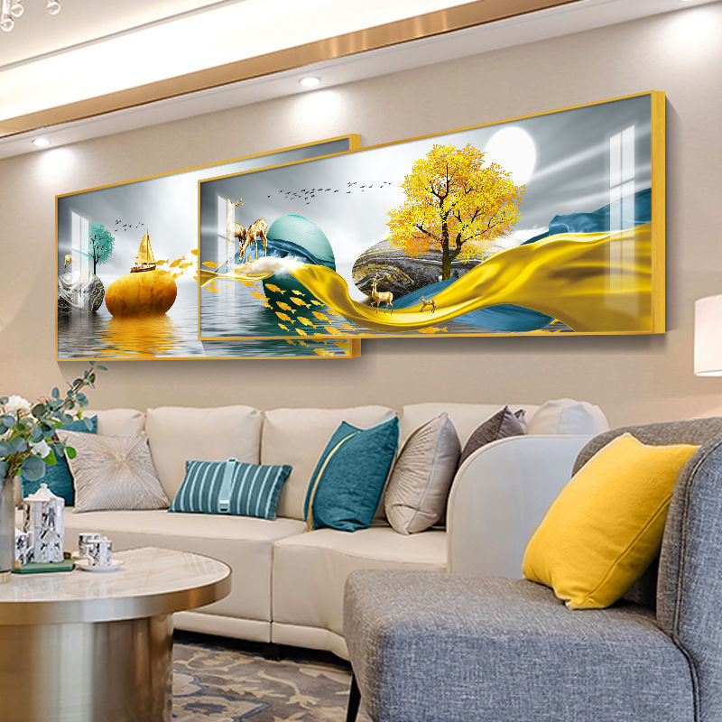Light luxury living room decoration painting modern simple style crystal porcelain painting sofa background wall painting high-end bedside superimposed hanging painting