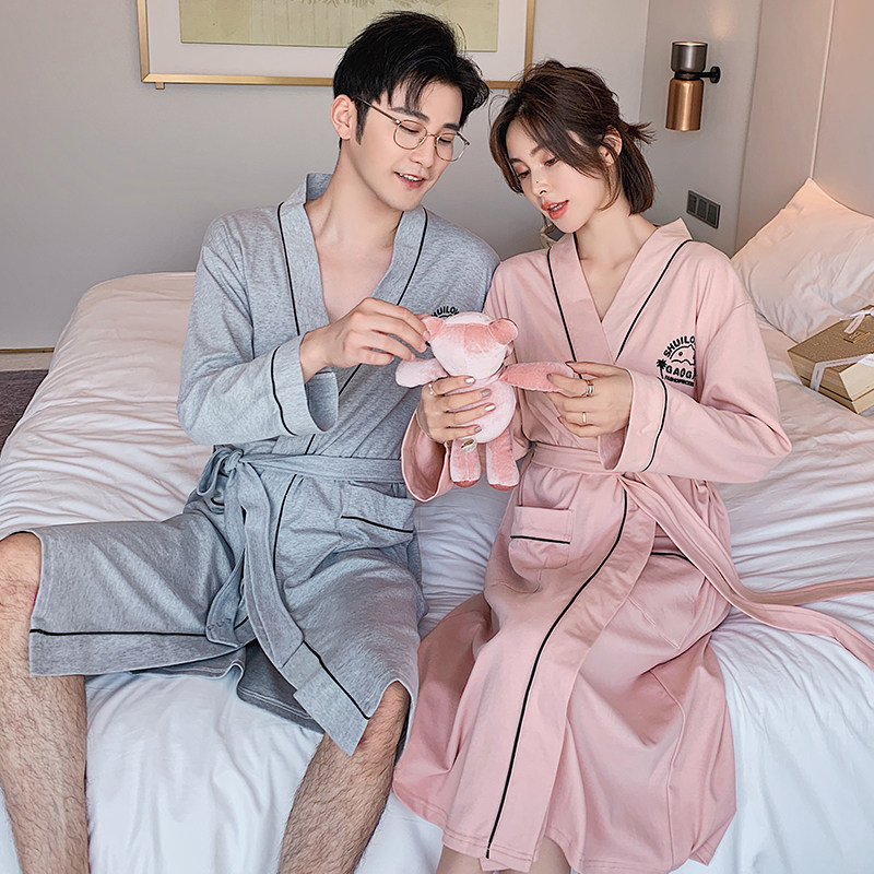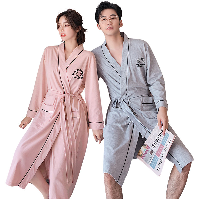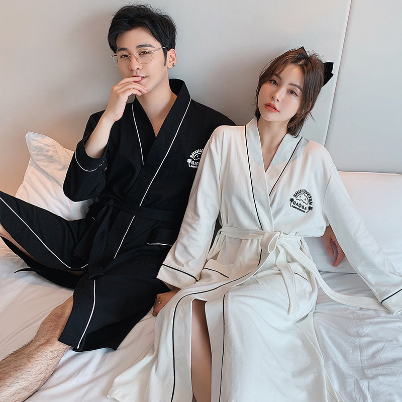 Winter Couple Sleeping Robes Lady Spring Autumn Season Long Version Pure Cotton Pyjamas Thin men's sleeping robes Hotel Absorbent Bath Clothes