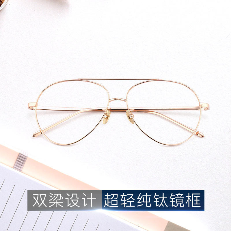 Large frame eye frame female nearsightedness can be matched with red-in-face small double-beam toad mirror pilot retro vegan eyes