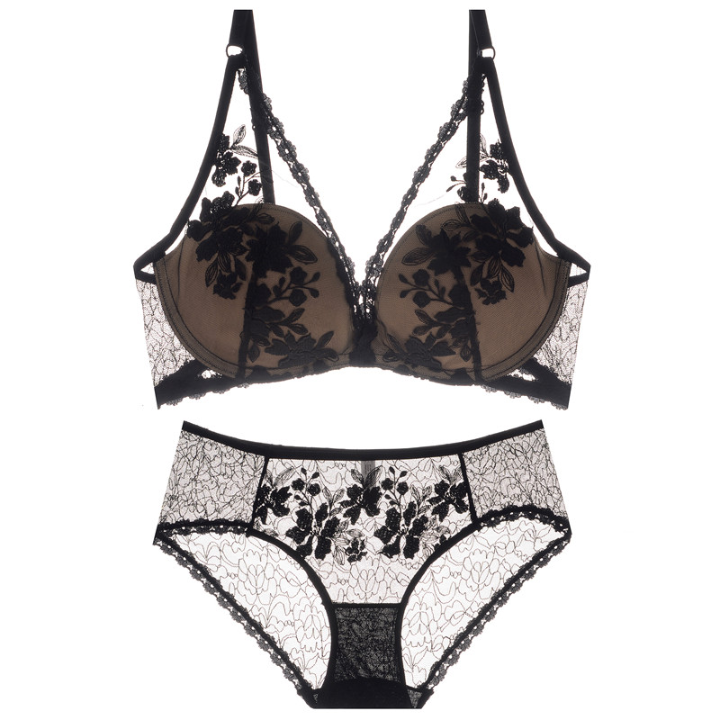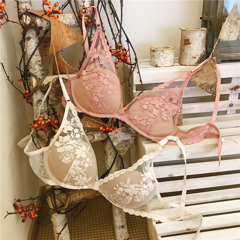 Small Crowd Light Lavish Style Embroidered Flowers Mesh Yarn Lingerie Women No Steel Ring Slim Fit for Comfortable Poly Bra Suit