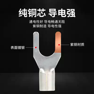 UT series fork shaped cold pressed bare terminal fork type copper terminal wire lug all copper cold pressed Terminal 0 2-10 Square