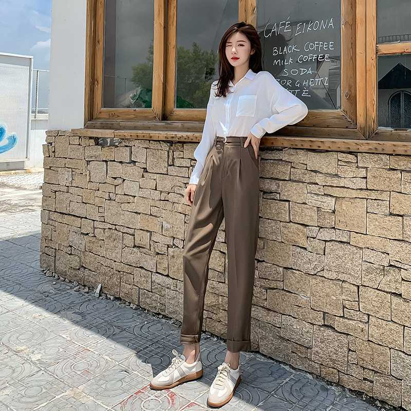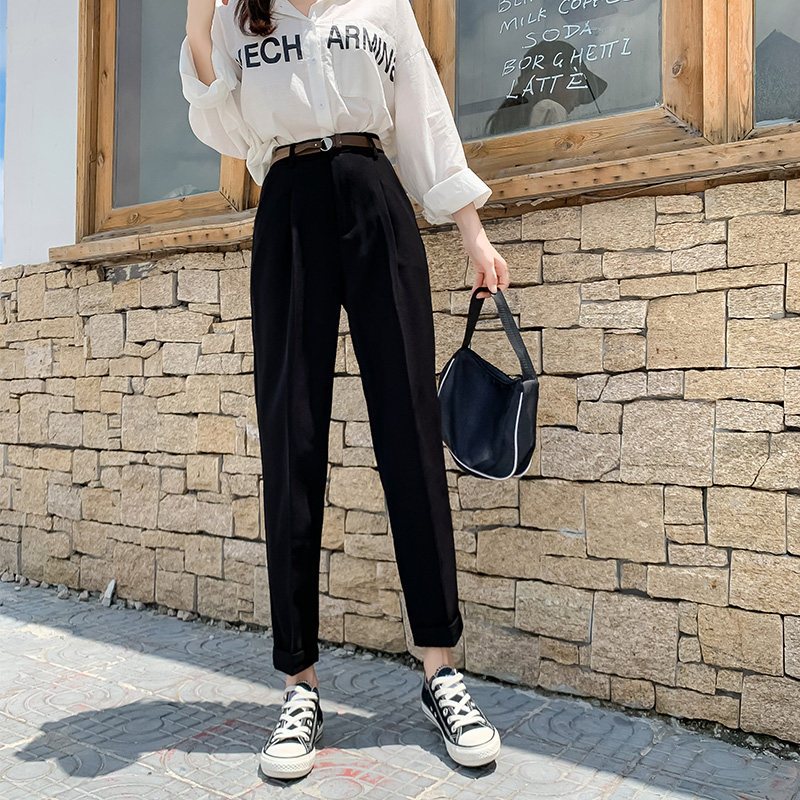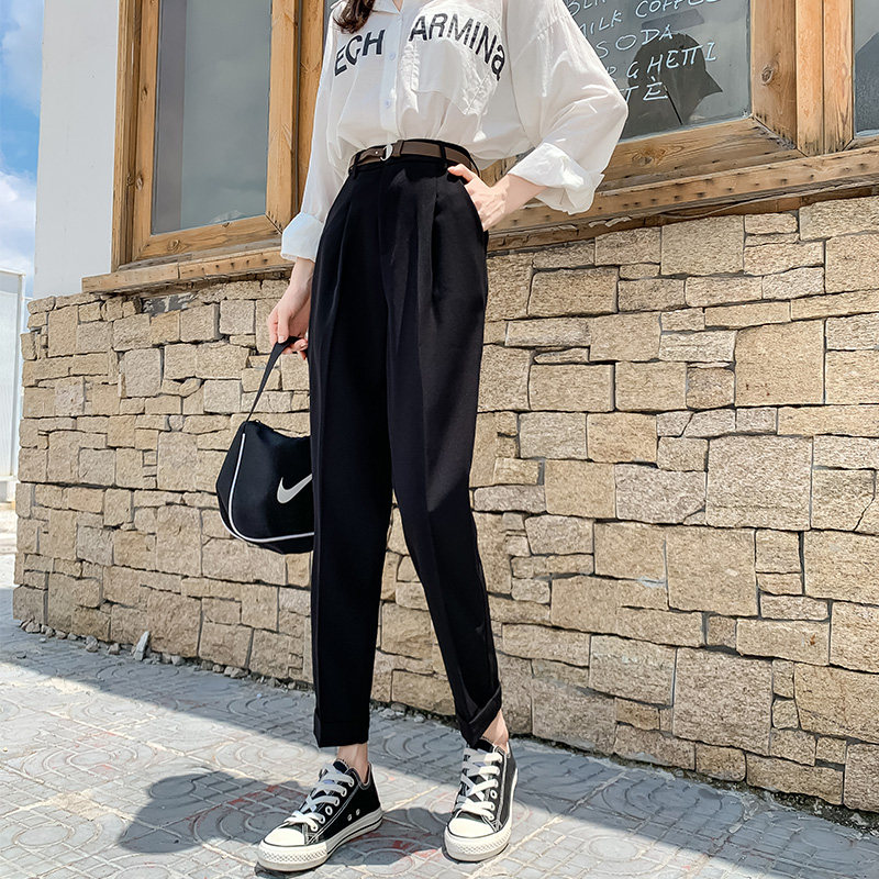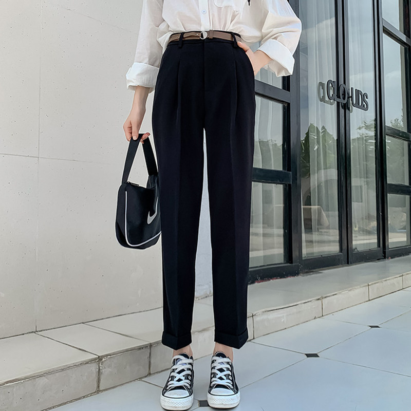 Draping pipe suit pants women's spring and autumn new Korean version high waist loose slim straight nine points harem casual pants