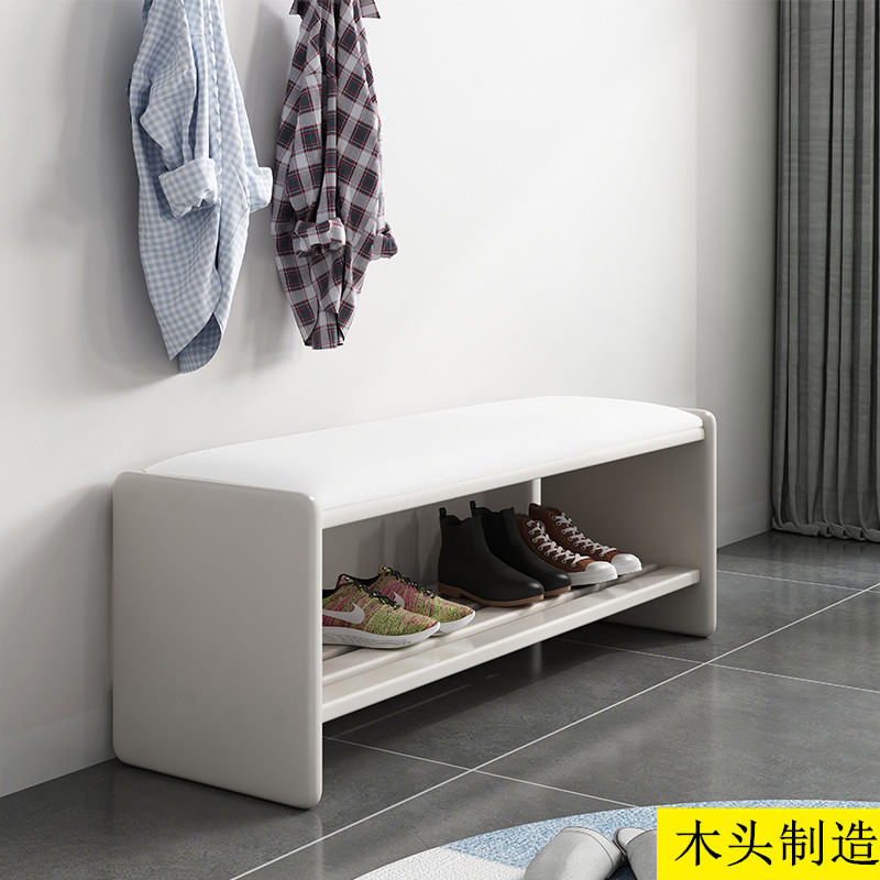 Solid Wood Shoe Changing Stool Modern Minimalist Stool Household Seatable Soft Bag Door Cushioned Shoes Nordic Entry Shoe Cabinet