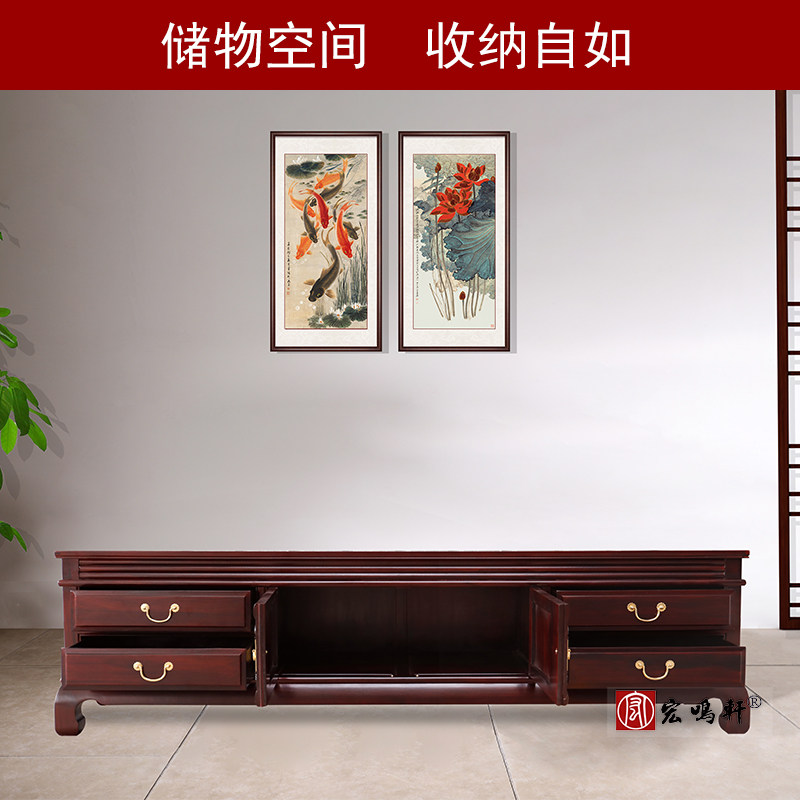 Red wood TV cabinet Film and TV cabinet Solid wood Chinese furniture TV and TV cabinet Background wall South American acid Branch 2m vegetarian surface lockers