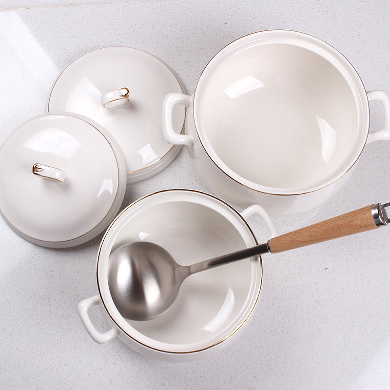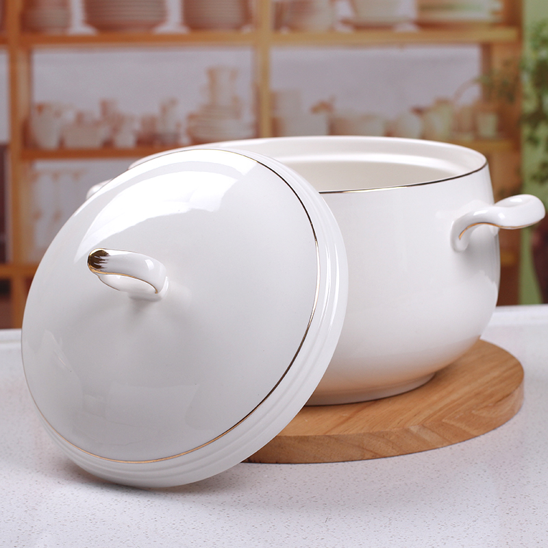 Original Taste CERAMIC SOUP BOWL LARGE NUMBER HOME SINGLE BOWL PUBLIC WITH HANDLE COVER 8 INCH STEAMED CREATIVE WHITE COLOR