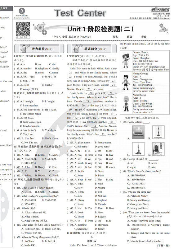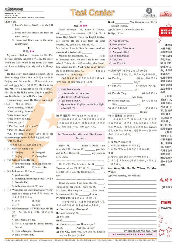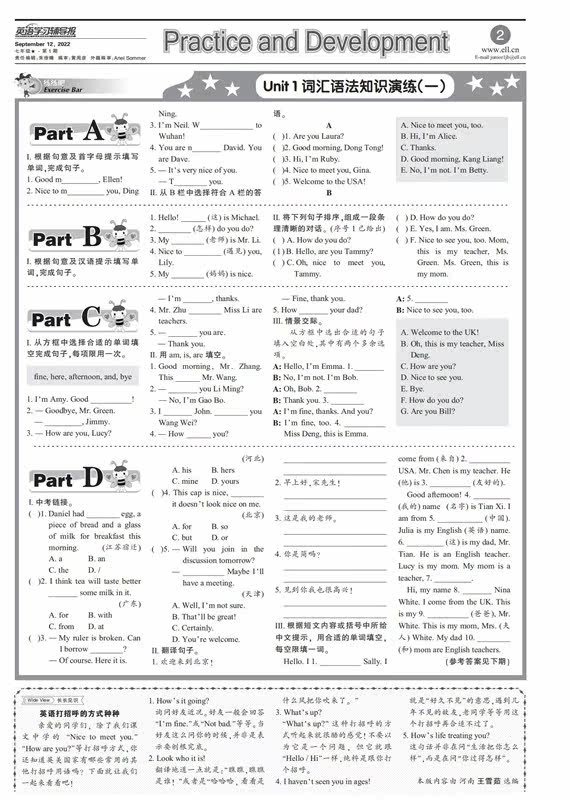 English Learning Guidance Report 7th Grade 7th Grade Renai Edition 2022-2023 Last Semester Science Edition Junior First Volume Teaching Supplement