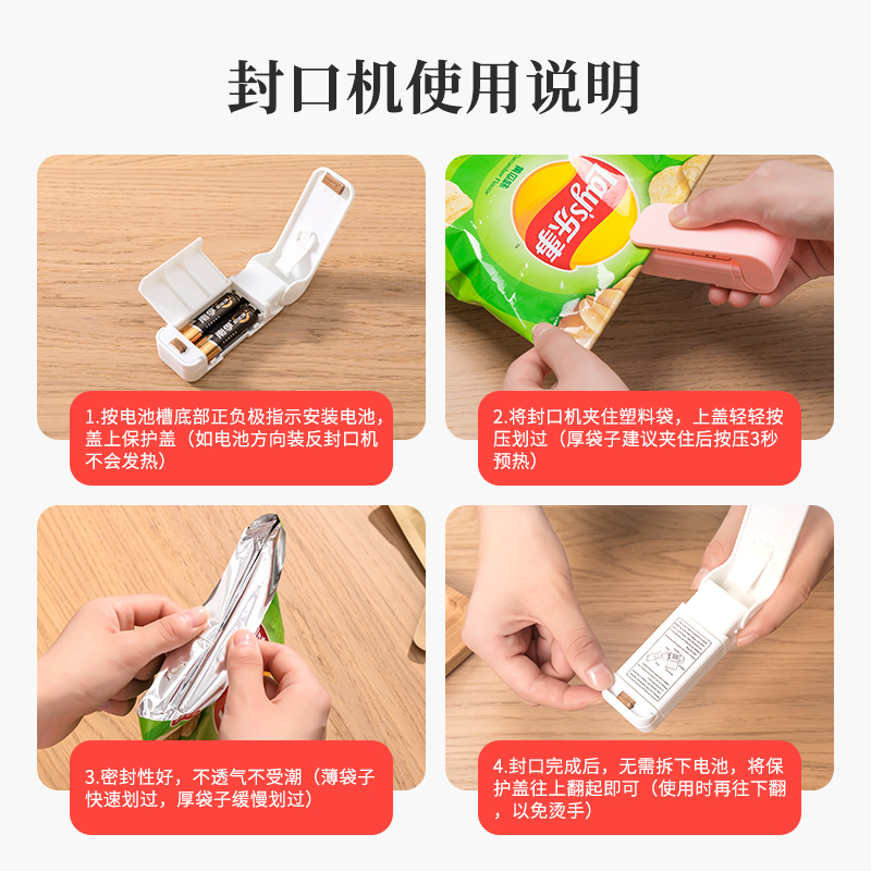 Portable mini sealing machine food sealing machine snack plastic bag sealing artifact household small hand pressure heat sealing machine