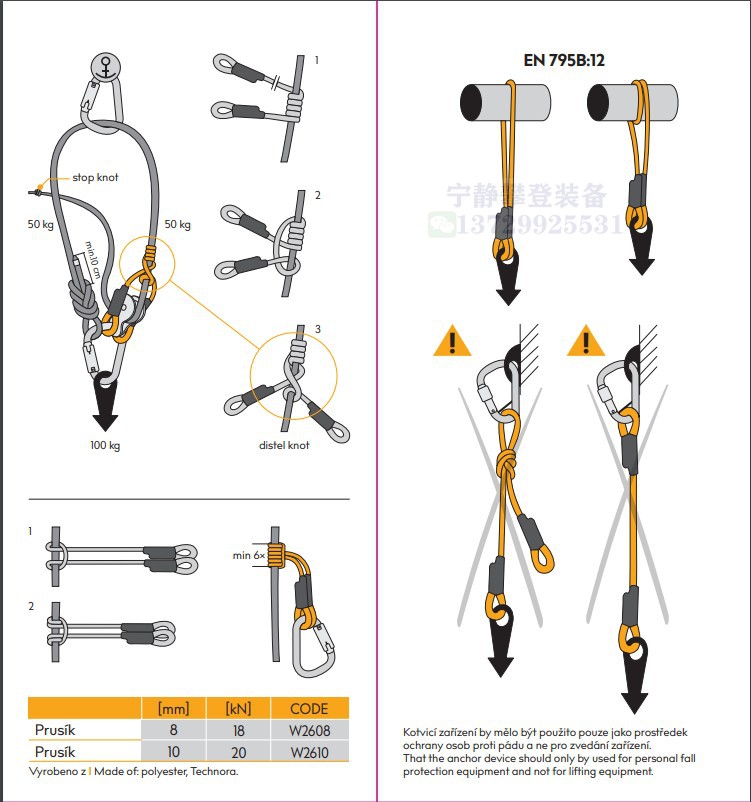SingingRock 8mm 10mm high temperature resistant Prussian Kevlar climbing VT eye grappling knot