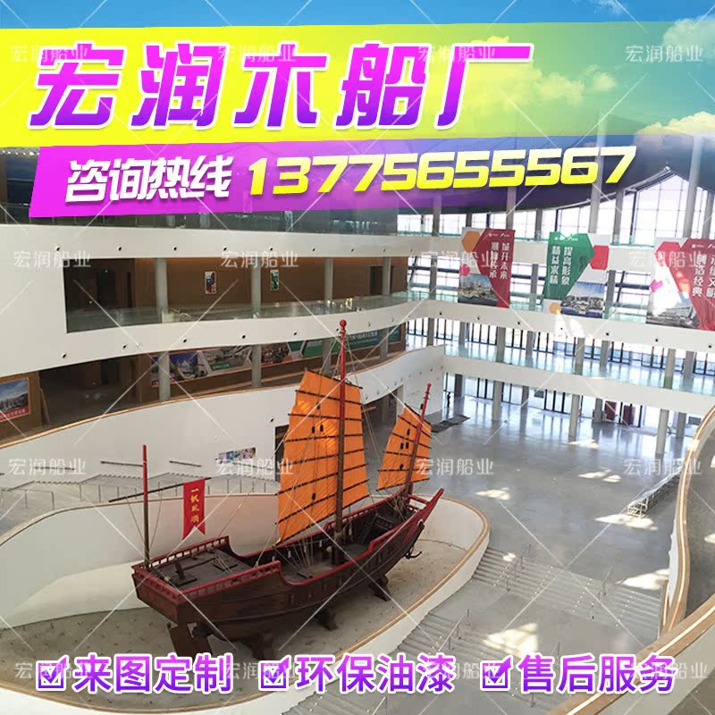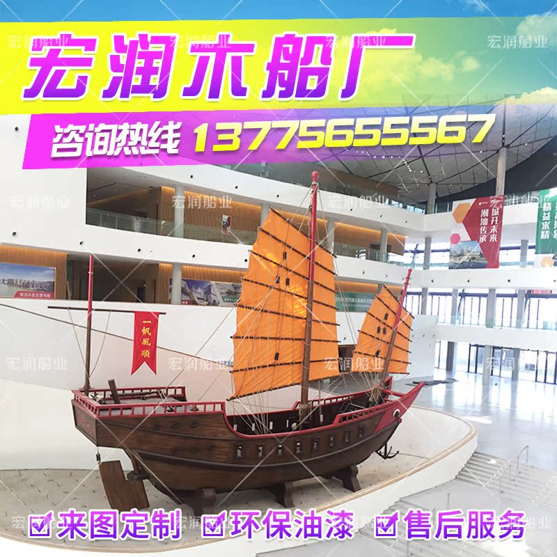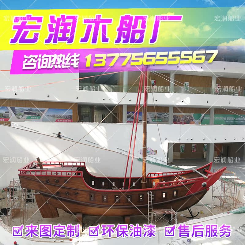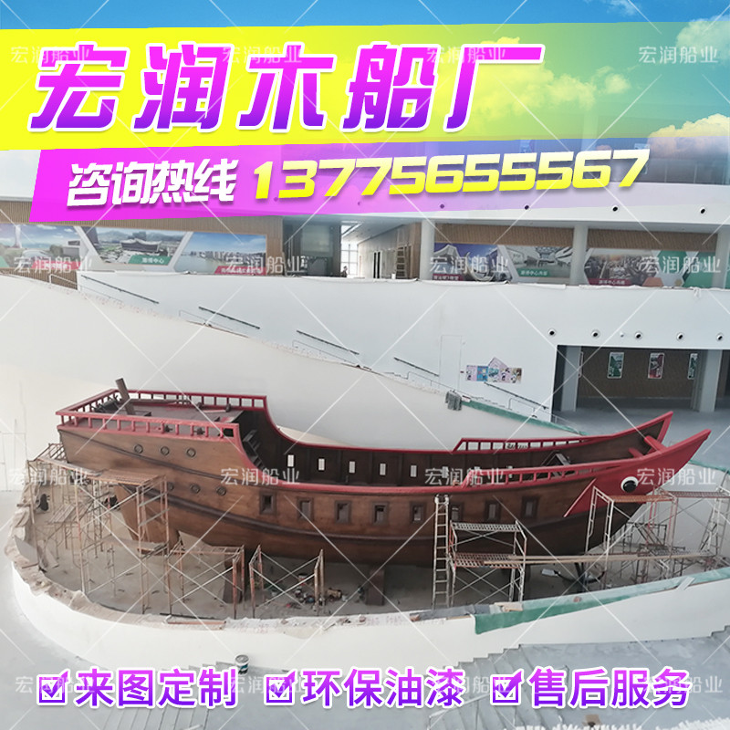 Wooden Ship Red Head Ship Large Outdoor True Anticorrosive Ornaments Prop Museum Sail Zheng Hebao Western Pirate Decoration