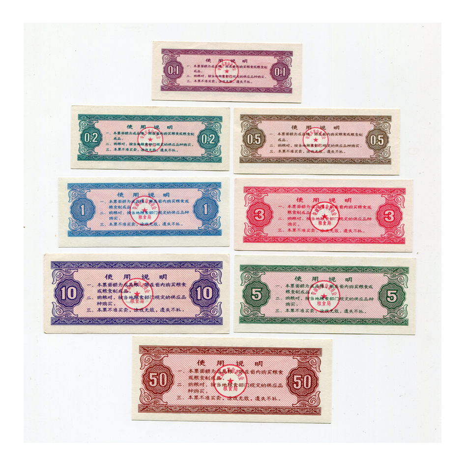 New 1972 Anhui Province local grain tickets with eight full set of tickets