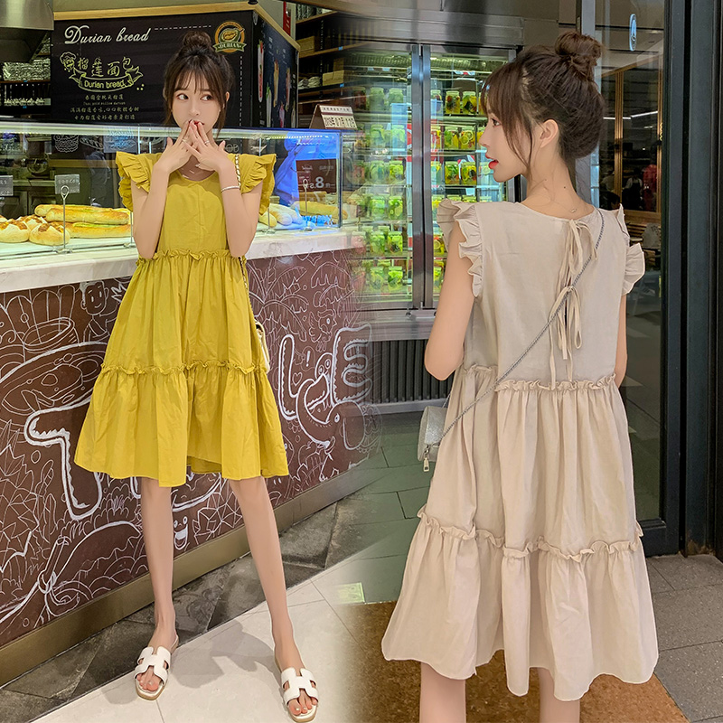 Cotton and linen summer sleeveless pregnant women's dress loose large size medium and long version of tide mother vest skirt large size loose female foreign pie