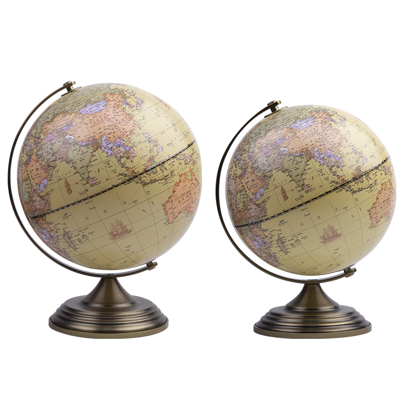 Morning Light Globe Pendulum Pieces Book House Office Supersize Metal Retro students with medium number Teaching HD mapmeter 32cm European style Living room pendulum piece World map Large number diameter 25cm