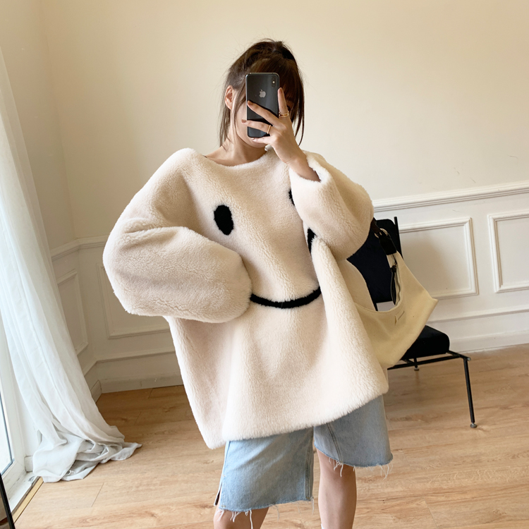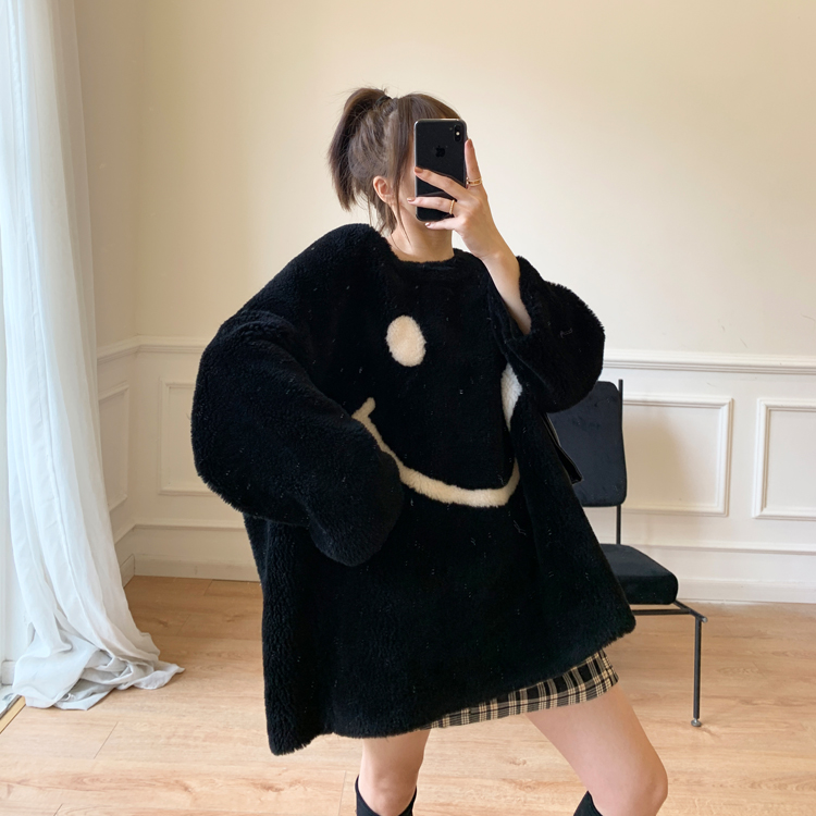 Zhou Honey 2021 New Big Laughs Face Full Wool Sheen Cut Leather Grass Jacket Woman Necroe Coat With Big Coat And Loose Color