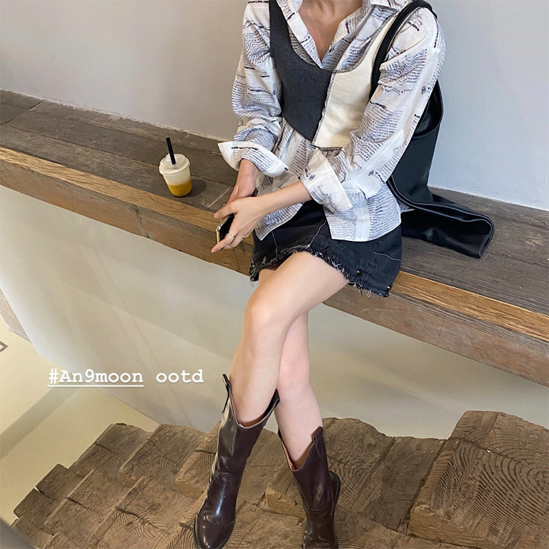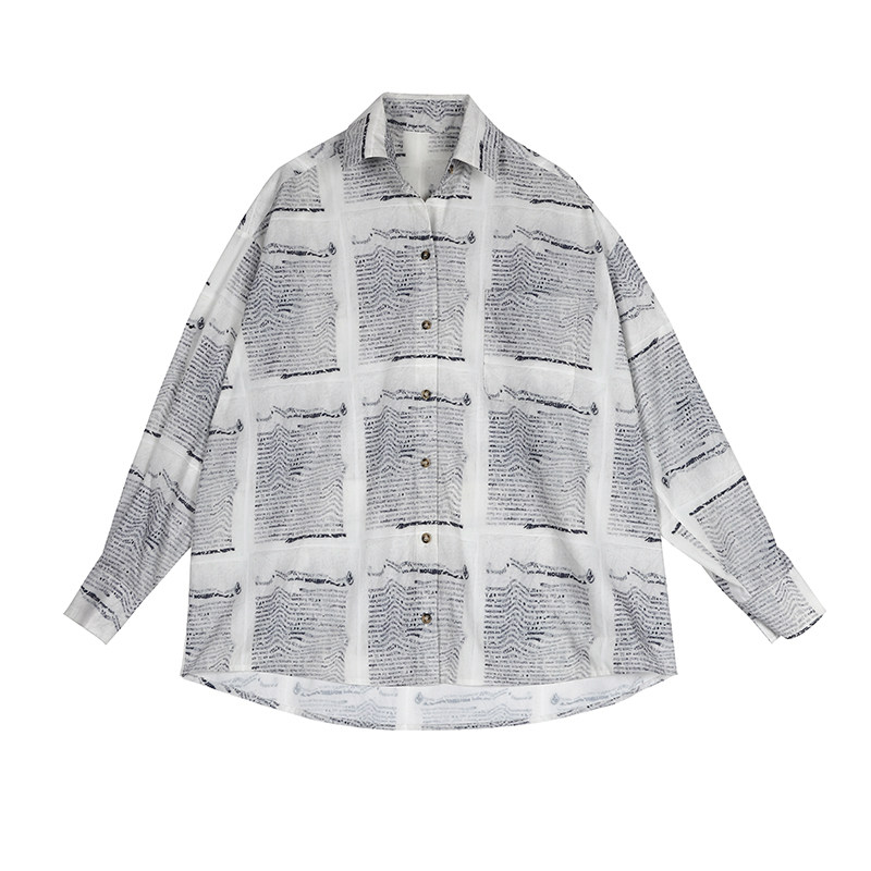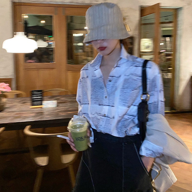 Anjiuyue sunscreen printed long-sleeved shirt women's early Autumn thin lazy wind retro wild sunscreen outer wear clothes