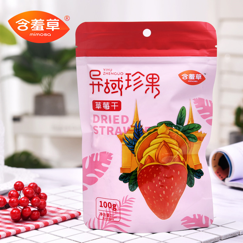 With Shy Grass Strawberry Dry 100g * 3 Bags Office Casual Snacks Snack Snack Candied Fruit Dried Girls