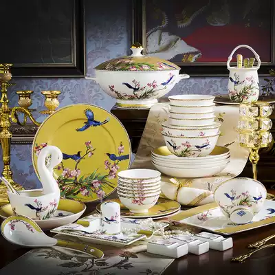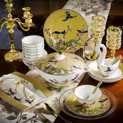 Jingdezhen Ceramic Cutlery Set Home Chinese Style Luxury Gold Penh European Bone Porcelain Dishes