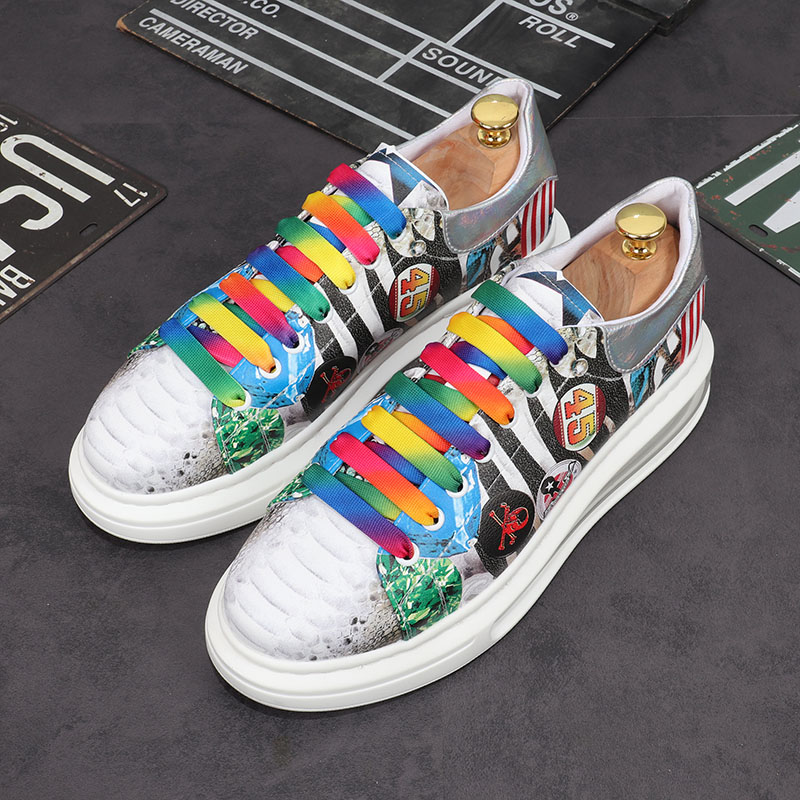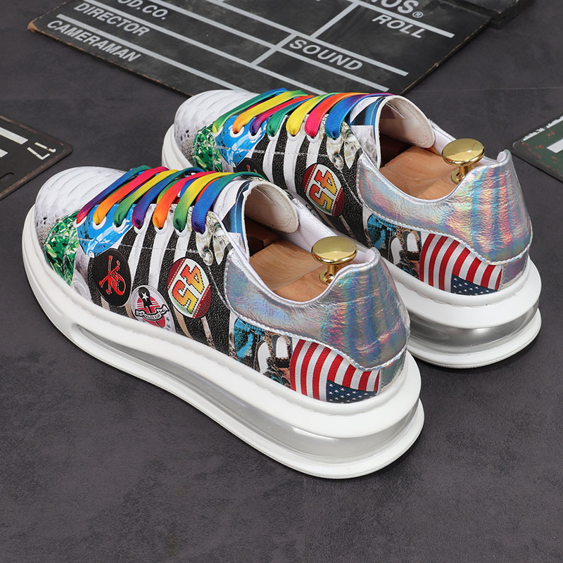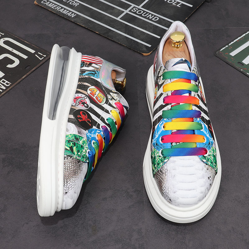 European station small white shoes men's thick-soled heightened camouflage casual platform shoes trendy all-match youth fashion printed shoes