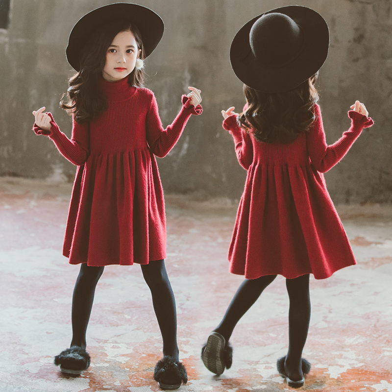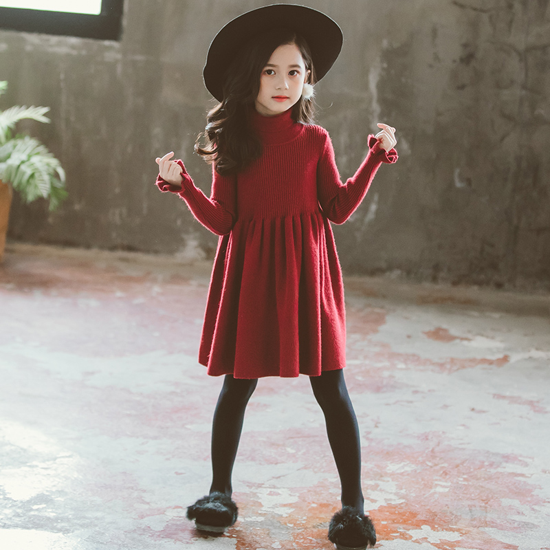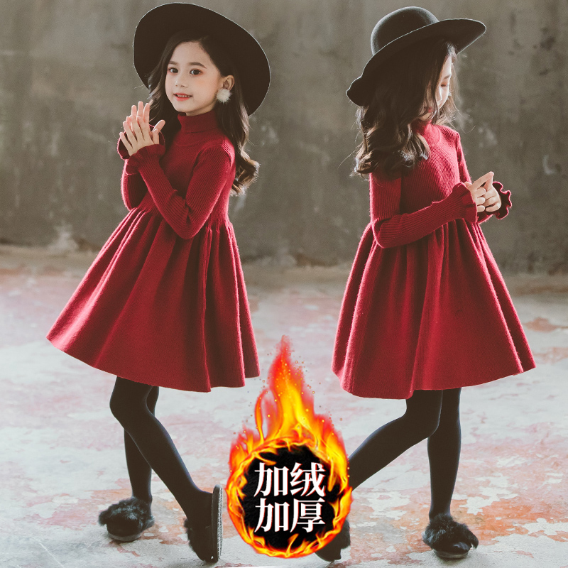 Girls Sweater Clothing 2021 new autumn and winter Korean pie in the big children plus thickened knitting princess skirt