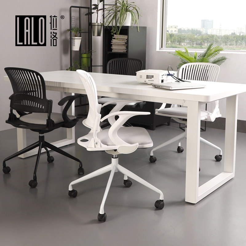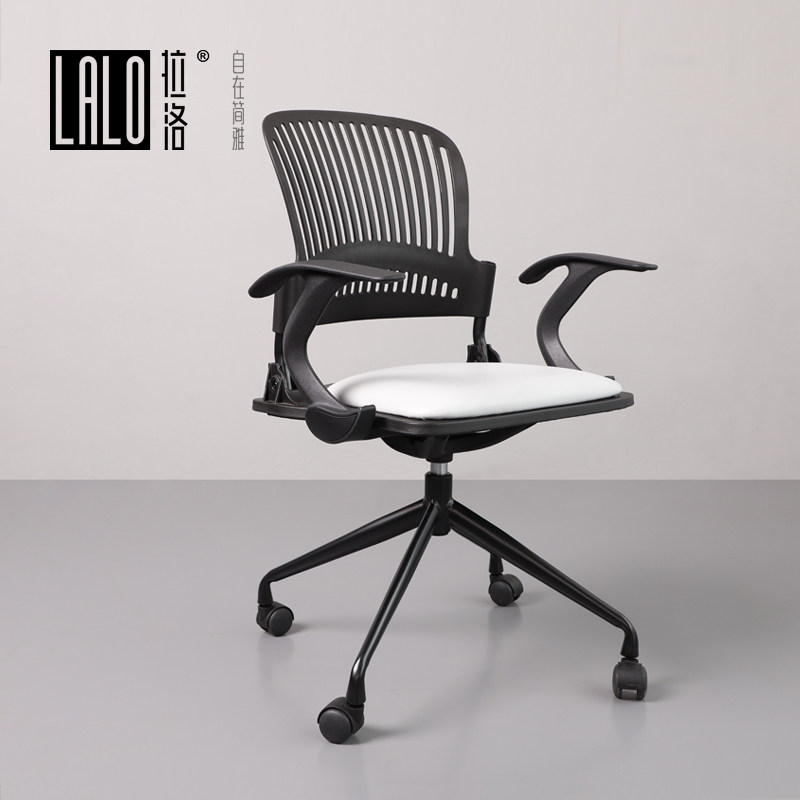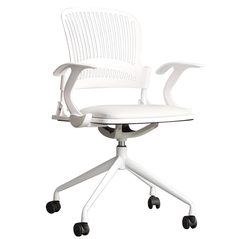 Lalo Futuristic White Wheeled Computer Chair Grille Back Design Armchair Simple Staff Office Chair