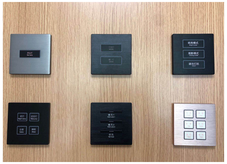 Customized hotel guest-controlled intelligent touch voice switch button aluminum brushed edge panel