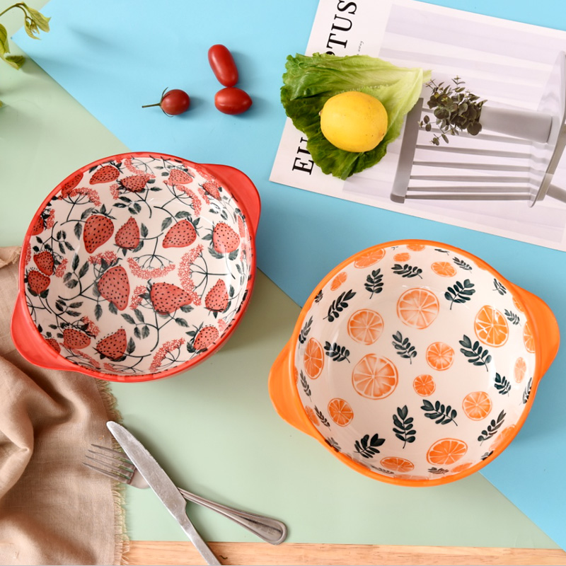 Soup bowl large household bubble bowl double ear bowl creative personality large bowl fruit bowl ceramic tableware