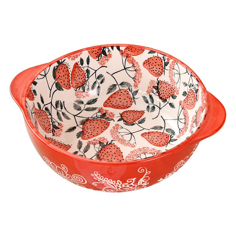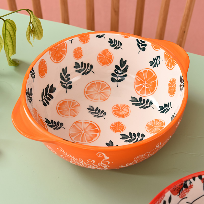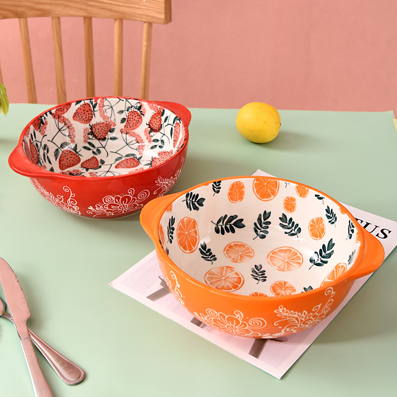 Twin ear soup bowl - large strawberry double ear soup bowl - large orange