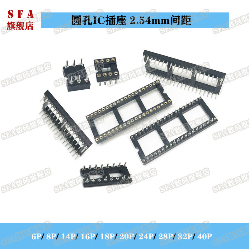 IC Socket Integrated Block Single Wafer Round Hole Straight Plug DIP Chip Base Sub 8P 8P 14 14 20 20 28 40P Feet