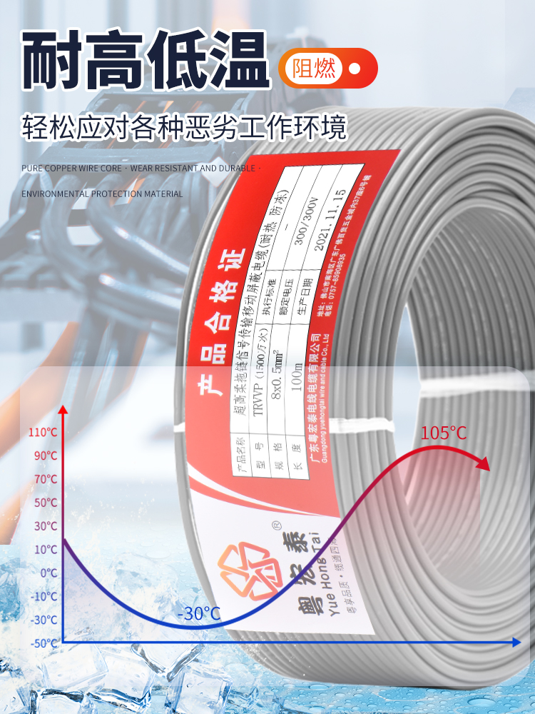 National standard pure copper rice, bending resistance 15 million times TRVVP 6-core 0.15 square (outer diameter 6.2mm) TRVVP 6-core 0.2 square (outer diameter 6.4mm)