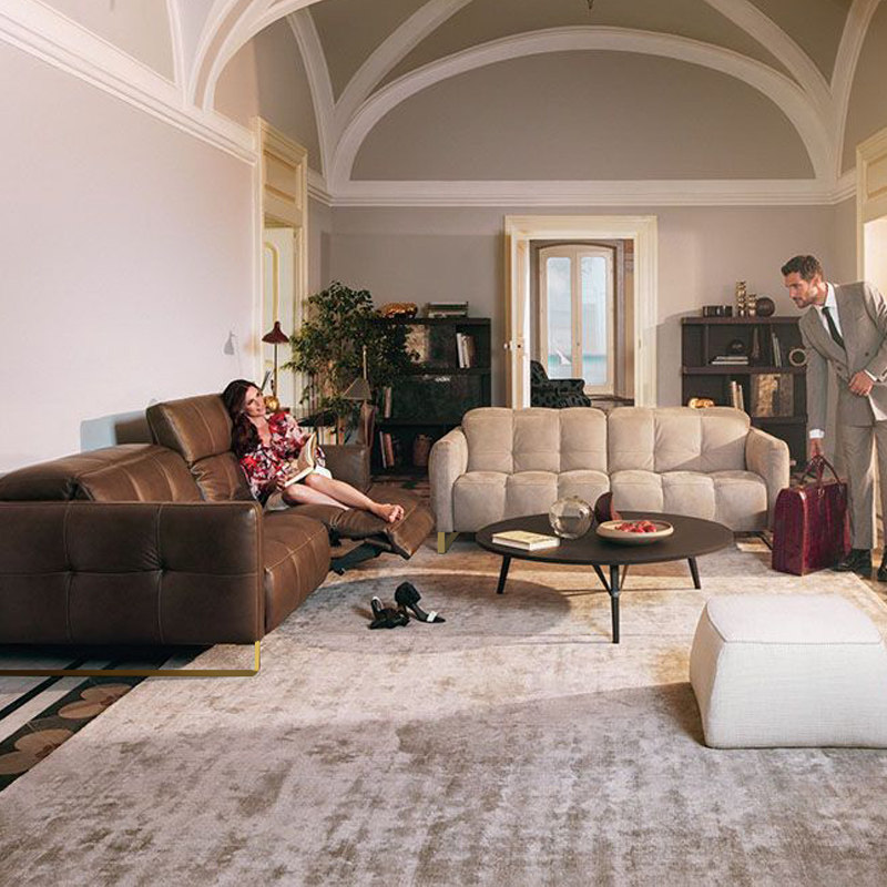 Italian Double Electric Head Layer Cow Leather Genuine Leather Functional Sofa Combined Trio Living Room with Fancy Light Lavish Sofa