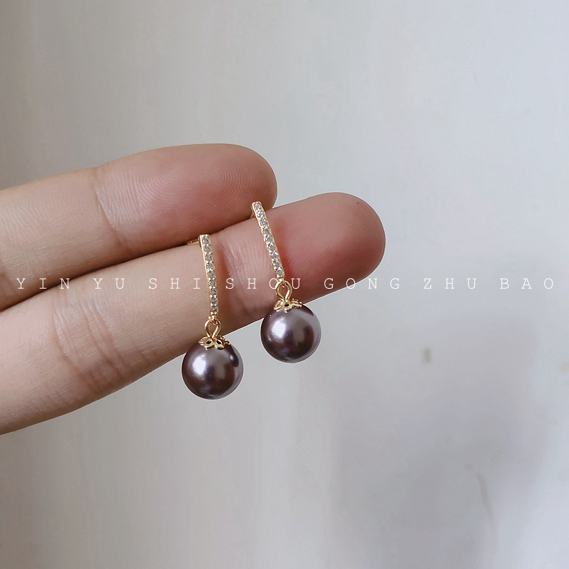 High-quality 925 sterling silver plated 14k gold micro-set vertical large pearl earrings temperament gray 2020 new trendy earrings