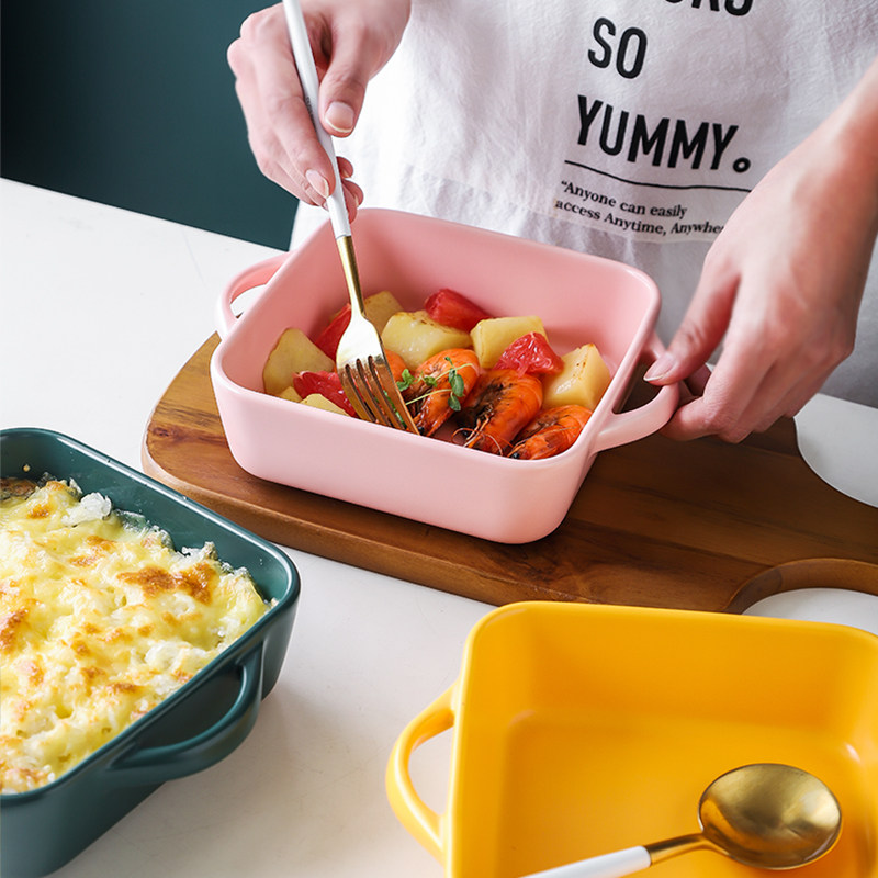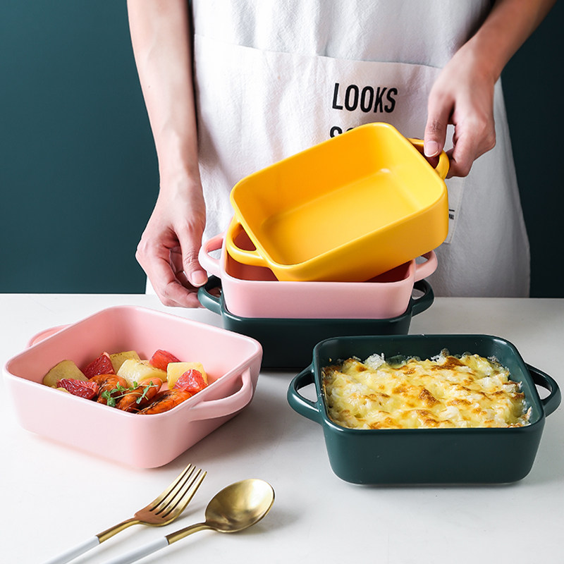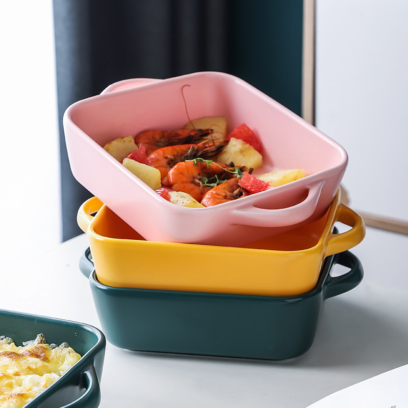 Double Ear Baking Pan Ceramic Oven Special Dishes Plate Home Microwave Oven Baking Bowls Creative Cutlery Cheese Baking Dinner Tray