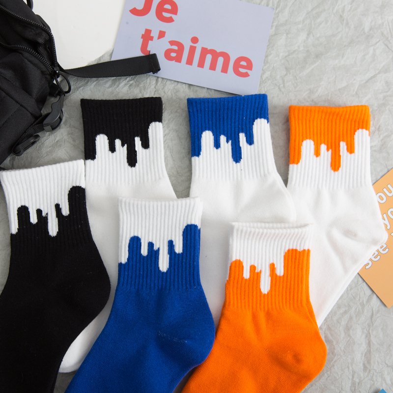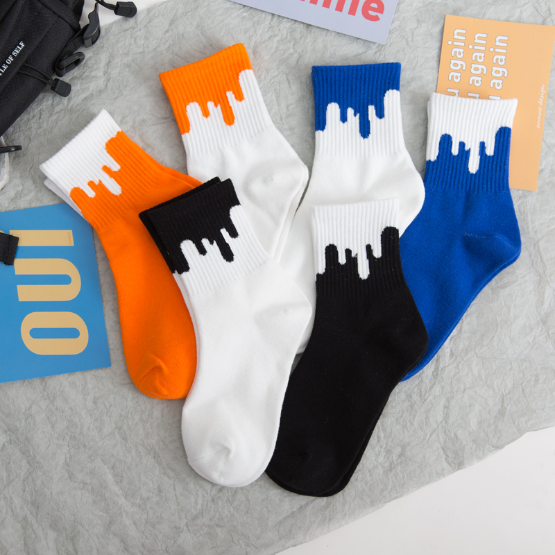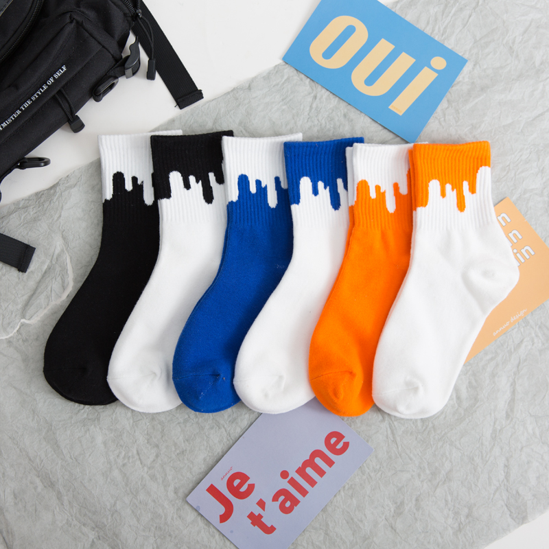 Socks male short tub in tide female cotton piece flows black and white socks autumn and winter couple Korean Out socks