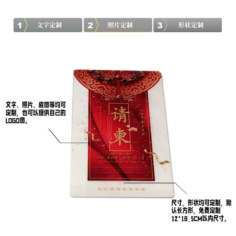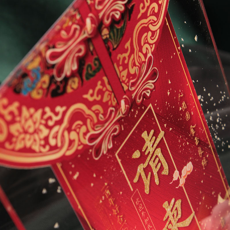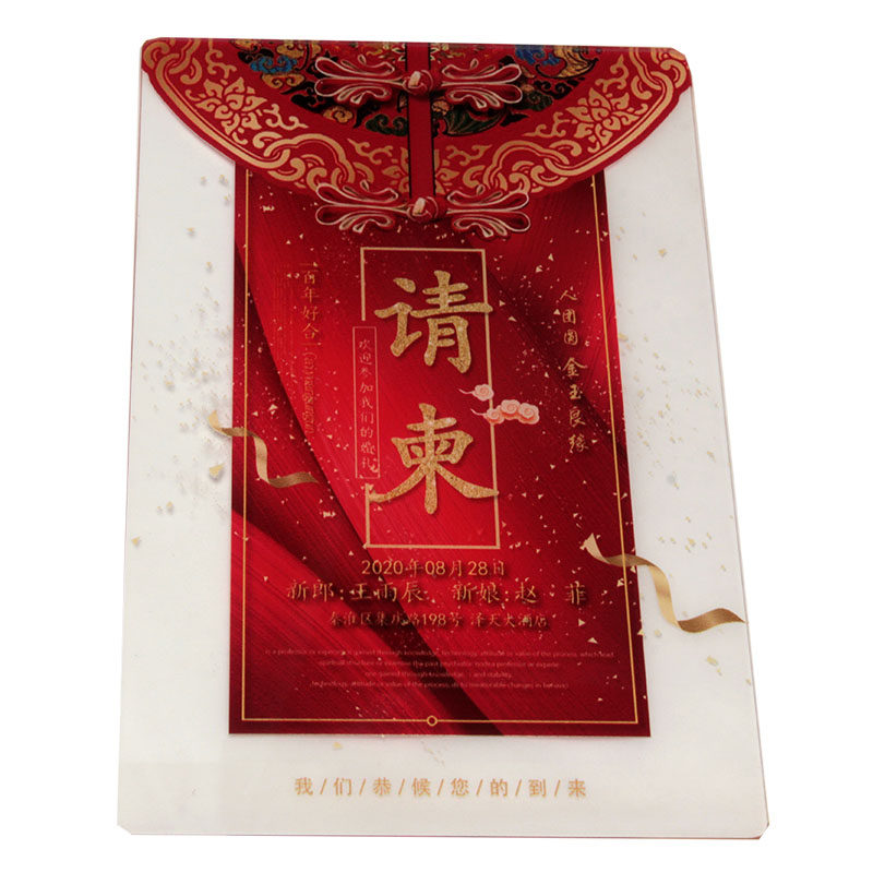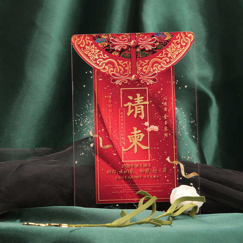 Red Chinese festive wedding celebration celebration celebration Creative high-end transparent press crypto invitation letter customized