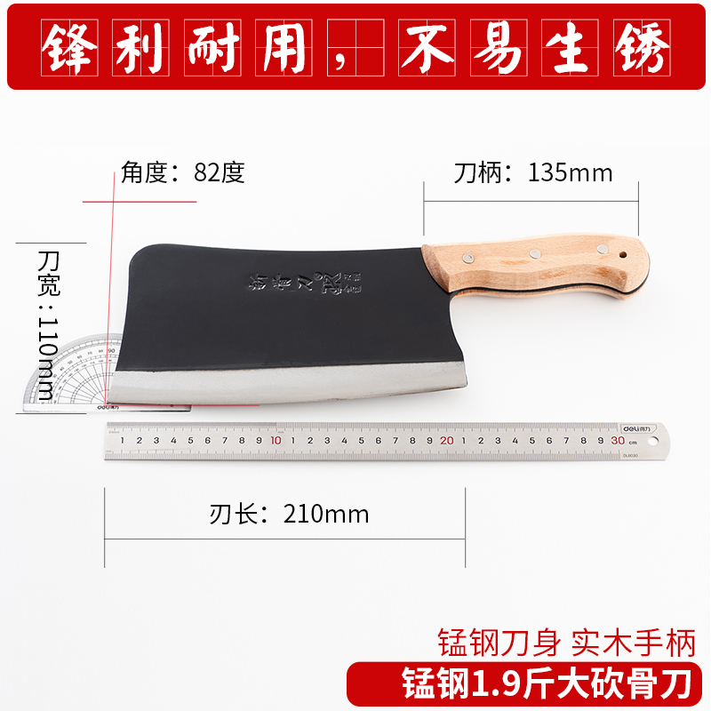 Bone chopping knife manganese steel bone chopping knife chopping bone knife forging and thickening household butcher selling meat chopping big bone knife kitchen supplies