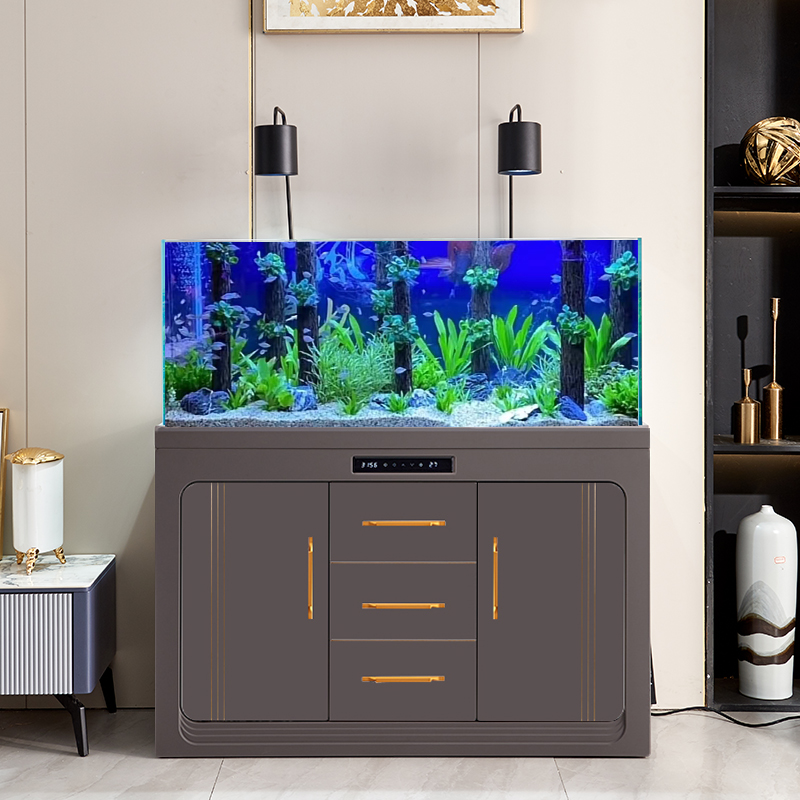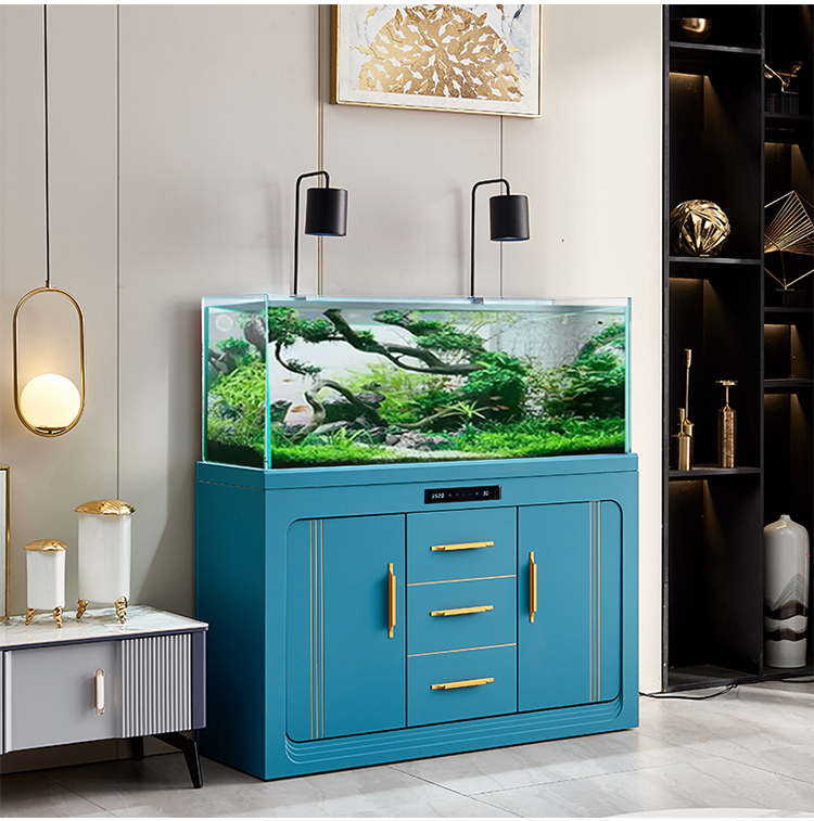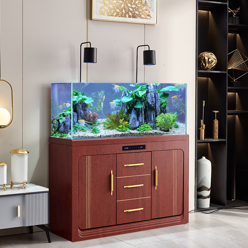 Lan shou fish tank aquatic grass tank living room household glass no-change water no-cleaning ecological bottom filter against the wall