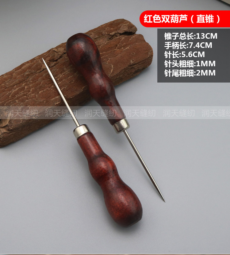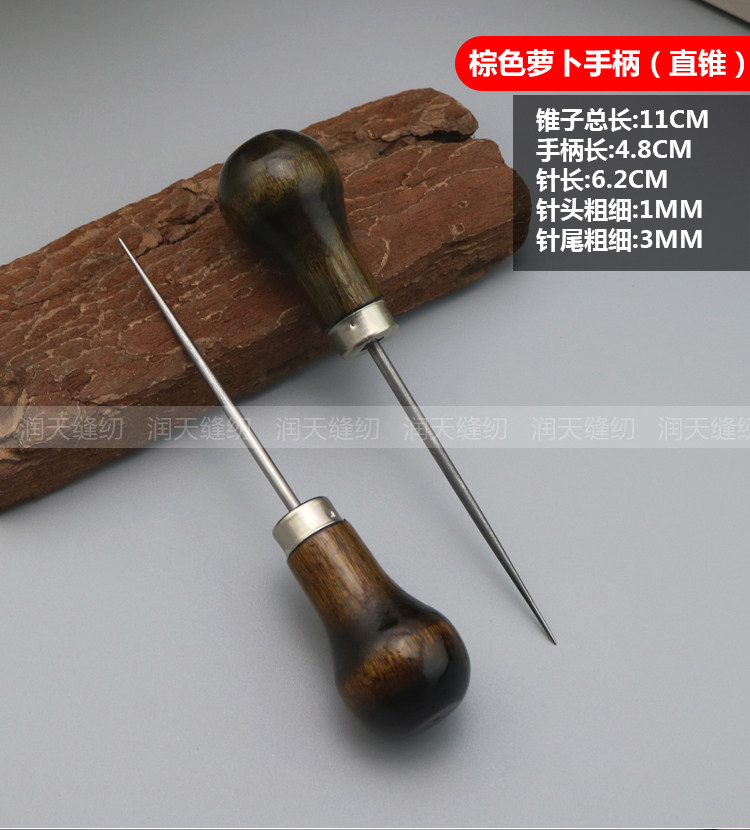 Manual Punching Cone Substitch Biplinth Wooden Handle Cone Son Leather Upper Shoe Cone Tool Full Steel Slender Cone Needle