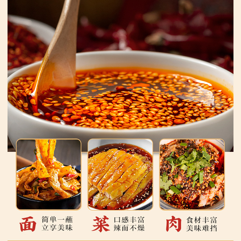 Zhongjing Chengdu red oil chilli oil Sichuan oil splasher spicy seeds mixed with cold noodles cold leather seasoning dip cooking 220g