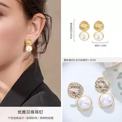 Ocean shell earrings female cold wind 925 silver needle shell beads small fresh earrings elegant drop earrings irregular earrings