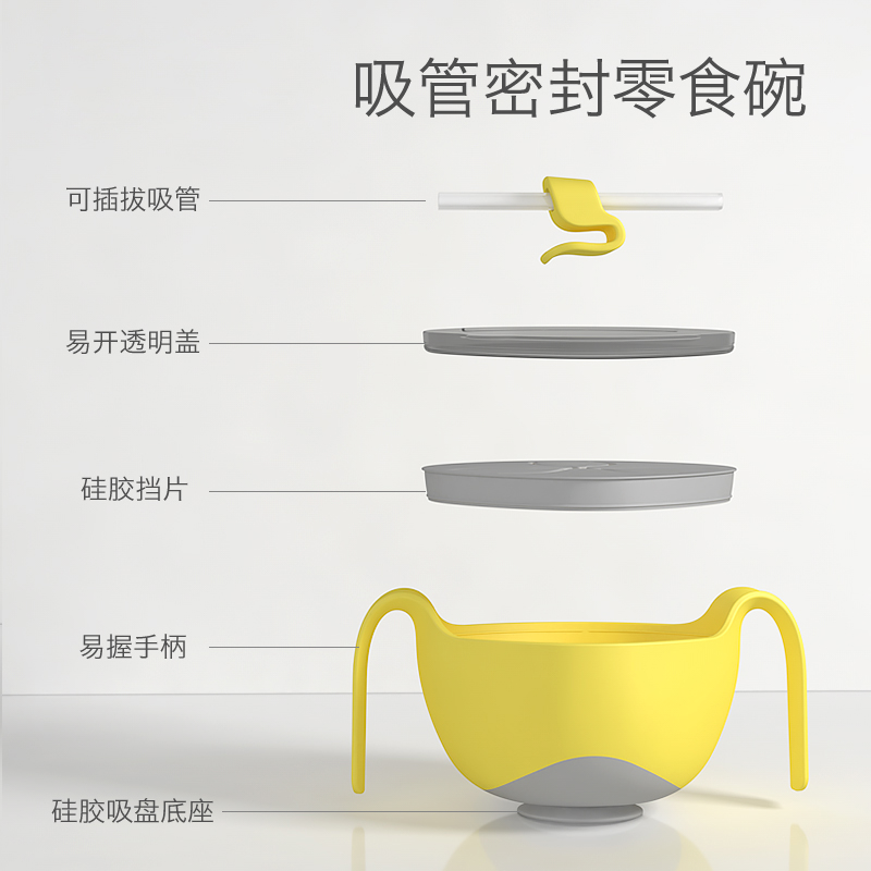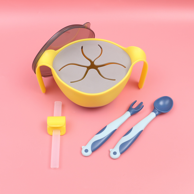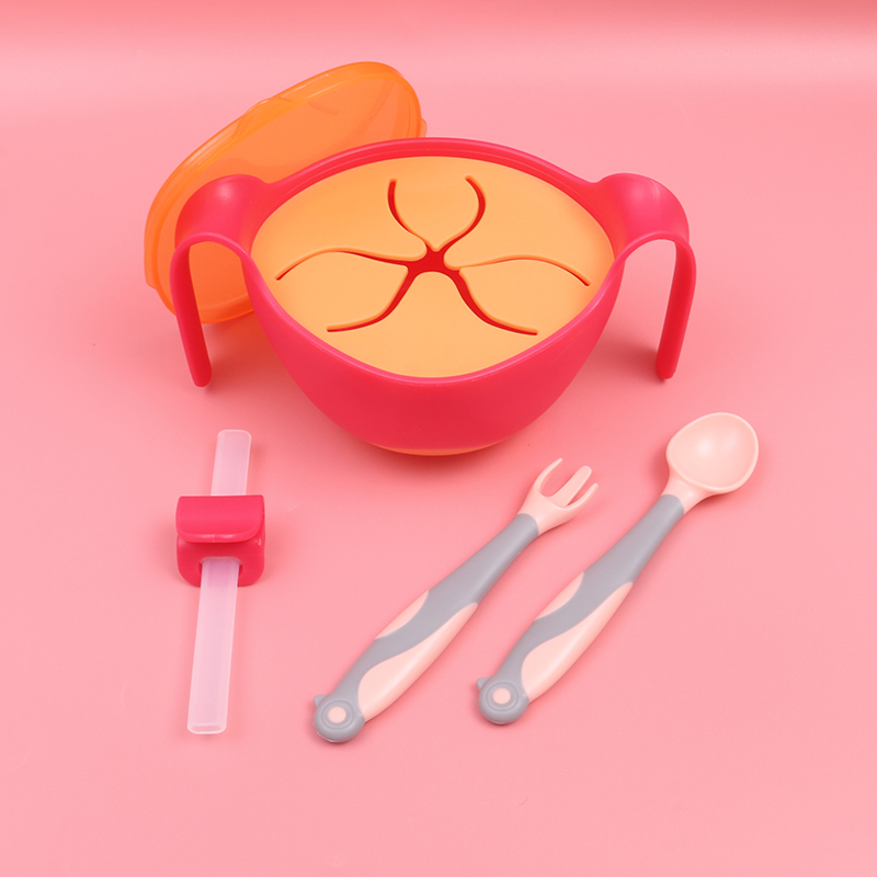 Baby soup straw bowl Three-in-one non-food bowl Baby with straw snack bowl Tableware set Porridge artifact